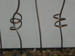 The base had to have enough weight to allow heavy jackets to be slung on the STIX so river rock was added to the design to create a heavy base that has a beautiful texture. It also absorbs any water that may come off the umbrellas when they are sitting in the coils.