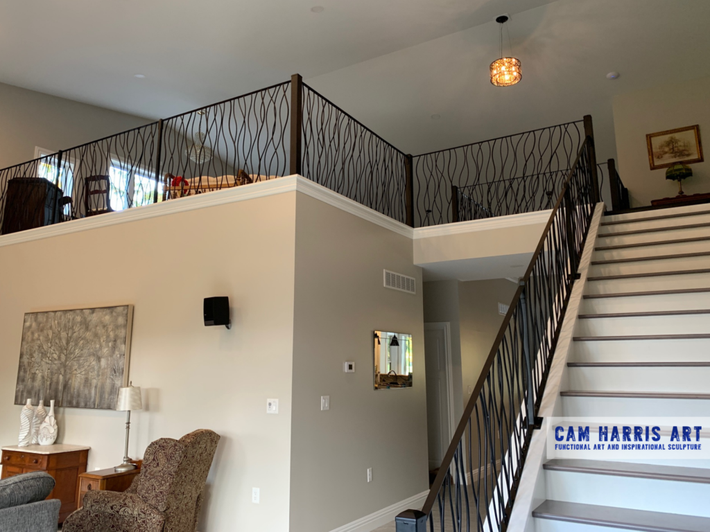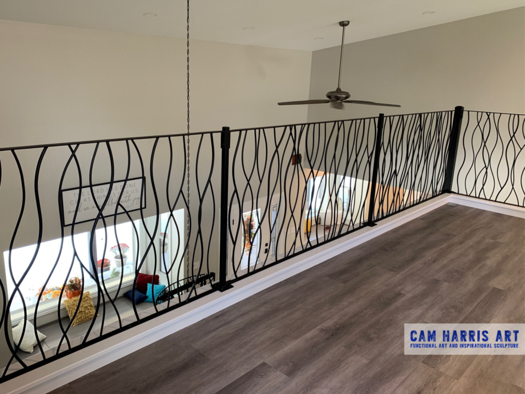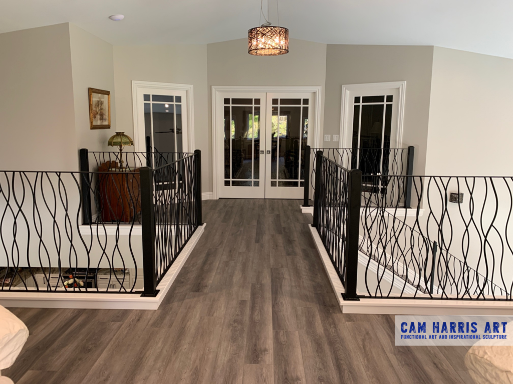 This new iron railing design by artist Cam Harris called Vines is a combination of 1/2 inch and 3/8 inch solid round iron. You will find the designs weaving over each other giving the iron art depth. At other points, it intersects and is blended together creating a seamless piece of iron art.