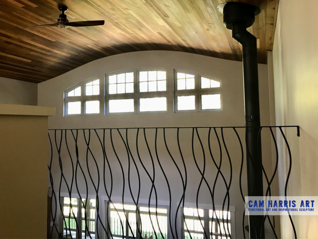 This Wrought Iron Railing Project in Qualicum Beach was for a client in Qualicum Beach British Columbia, Canada who needed a railing for their Qualicum Falls Hideaway. They chose my iron art design that I call my Entwined wrought iron railing. After installing the railing the client added their own wood handrail on the top.