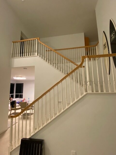This modern iron railing is my Sticks Design and sleek and strong is a great way to describe this look. Created for a client in Oceanside California, this client replaced their entire old railing
