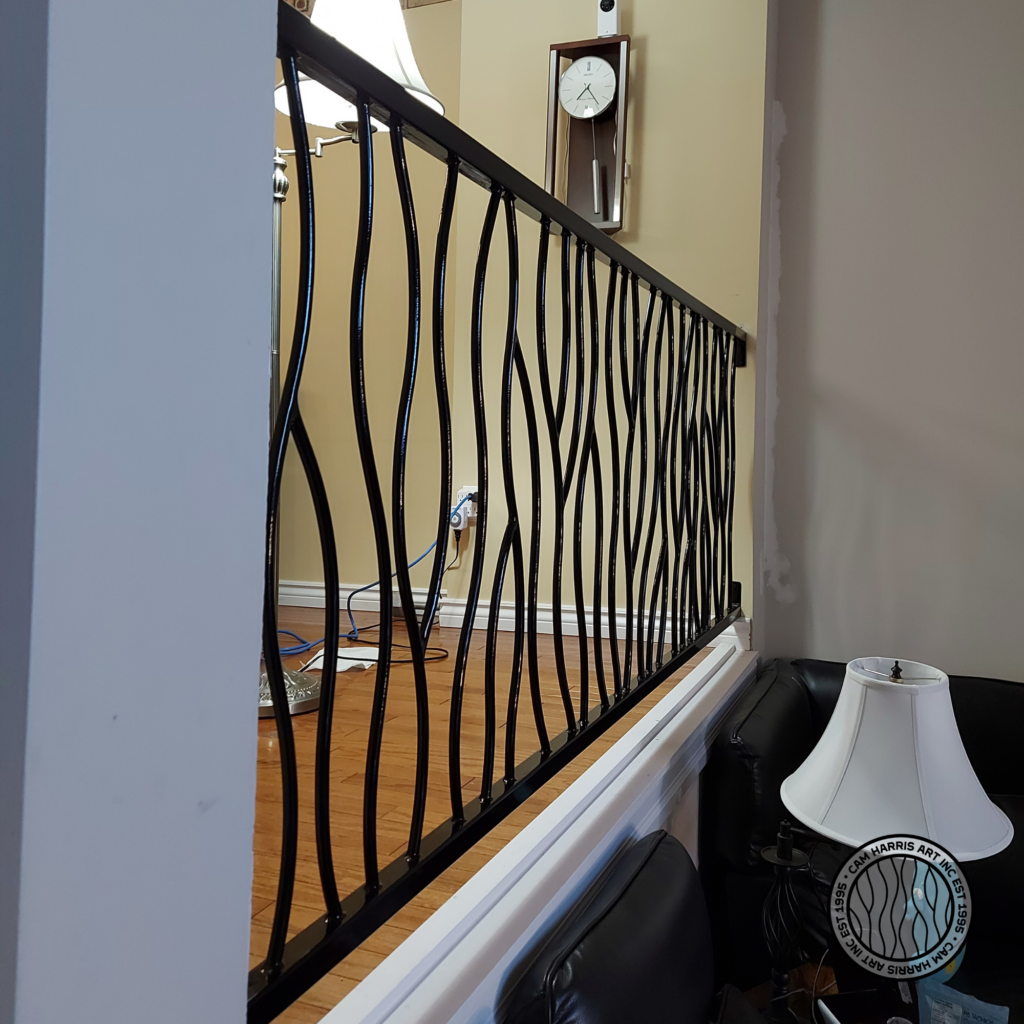 This interior metal railing was done in my Bent Design for a home in Pickering Ontario Canada. Each section was custom made to fit the space.