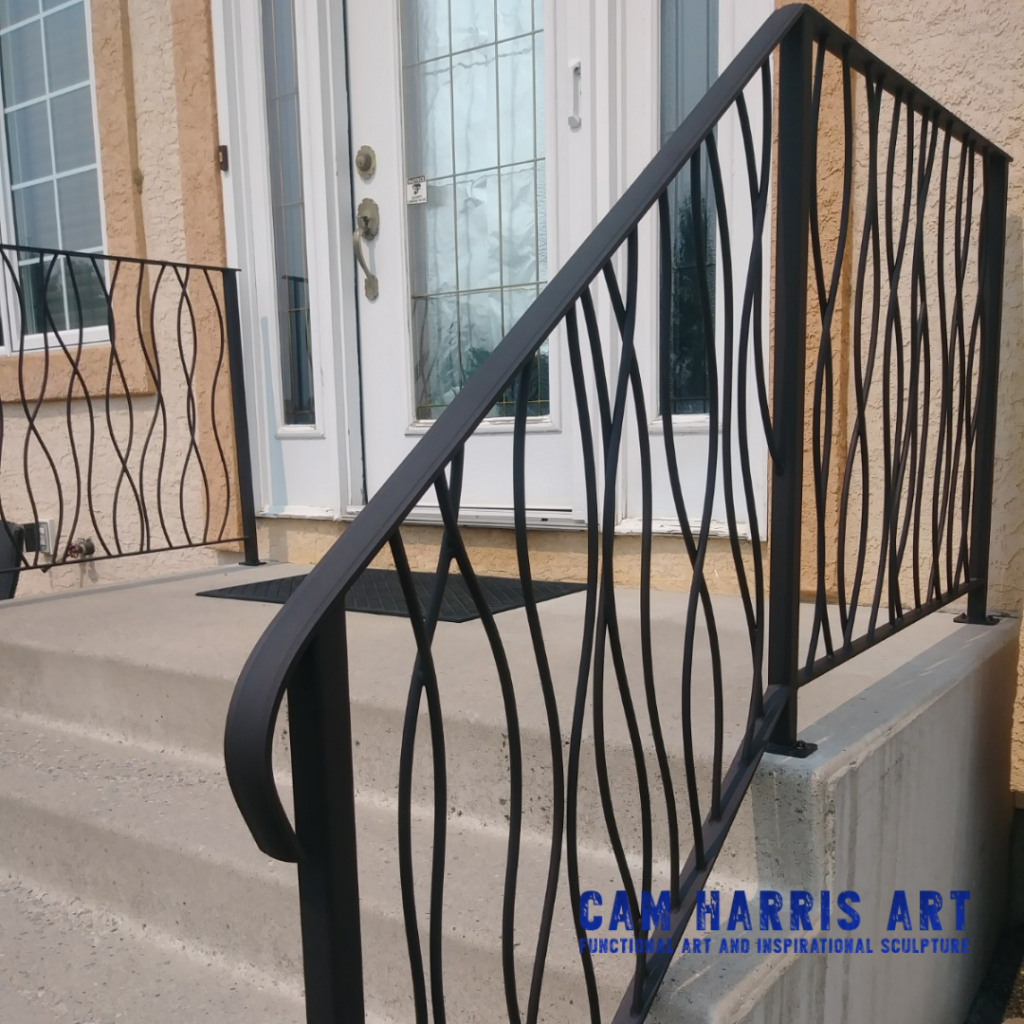 Entwined Design iron art railing is created with each piece being hand bent in a random pattern so that no two sections are the same. This gives an organic look to your entire project creating an amazing focal point in your home. There are 2 layers of 3/8″ solid bent steel giving depth and strength to each piece of wrought iron art railing.