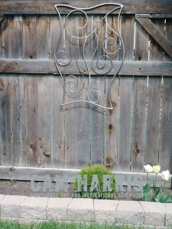 Made from raw steel all pieces are hand bent cold and welded together then brushed and blended giving the steel surface a textured look while adding depth to the piece. The entire piece is around 28″ wide x 39″ high. It is clear coated to prevent weathering in all conditions.