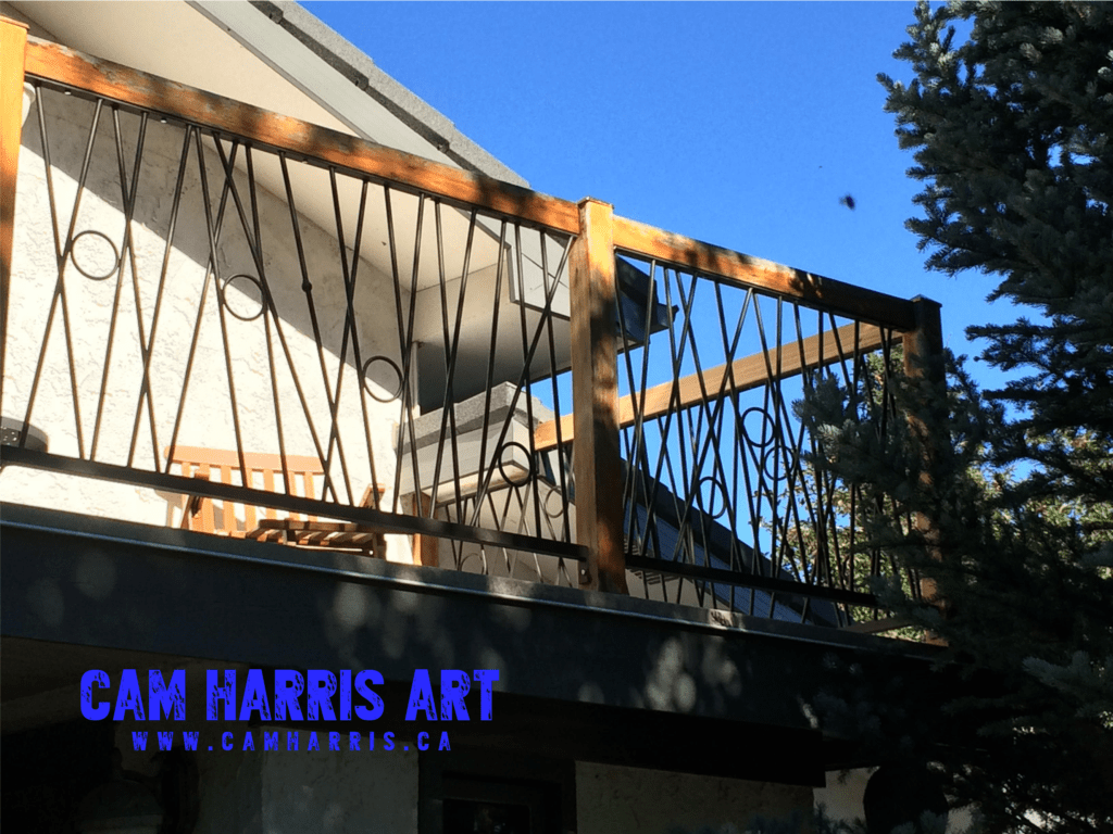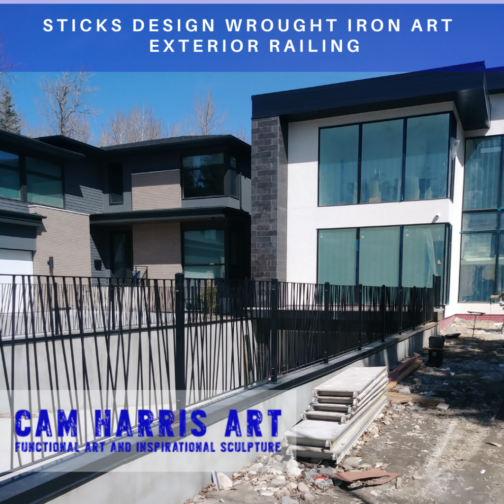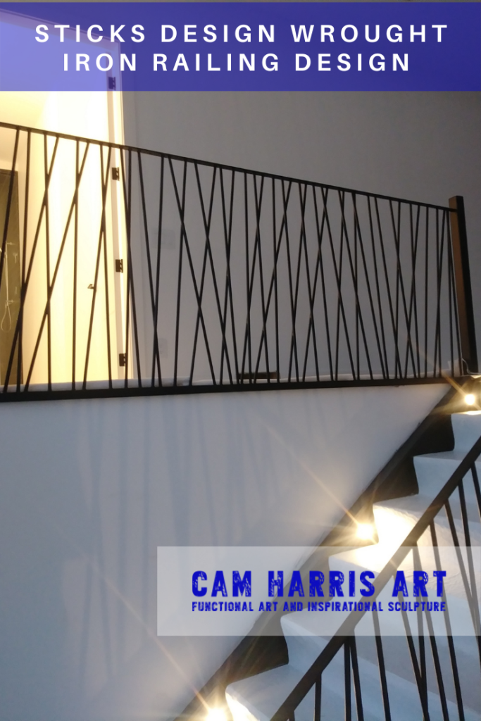 My Sticks Design iron art railing is made from 3/8 inch solid round mild steel. It is created using 3 layers to get the desired strong and sleek look of this design. This also gives strength to each section. Each piece of art is laid out so that no 2 pieces are the same. I look at each one as its own unique piece of art and through multiple layers of steel and blending of the welds, a piece of art is created. This gives you a one-of-a-kind piece of functional iron art to enhance your living space.