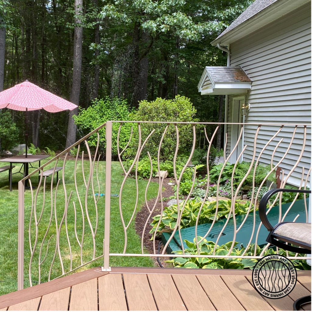 Twigs Design iron art railing is a contemporary interpretation of tree branches sculpted in steel. This metal railing is created using three different widths of solid round steel for beauty, strength, and durability.