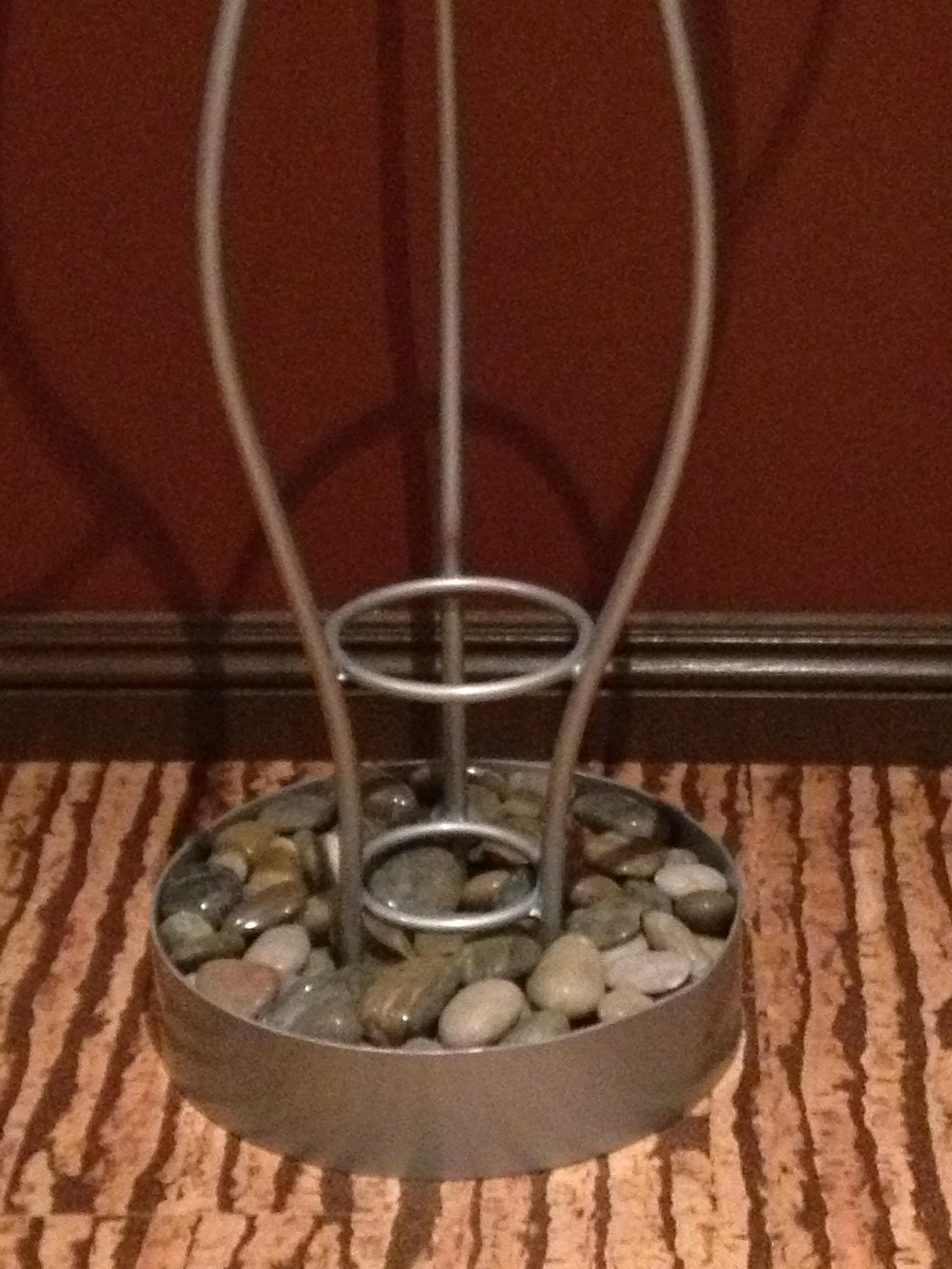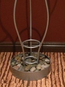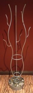 This is an up-cycled coat rack was made from reclaimed steel scraps left over from other projects. I called it the Ice Fire coat rack and it has rings in the middle for umbrella’s and river rock in the base to soak up any moisture from the umbrella’s as they are drying.